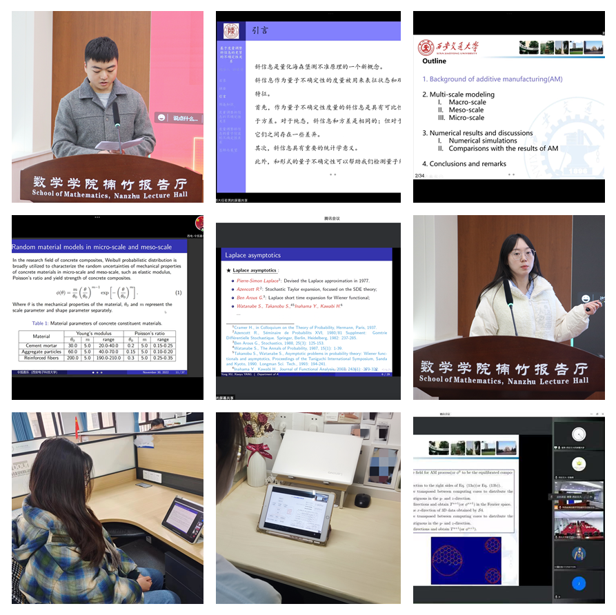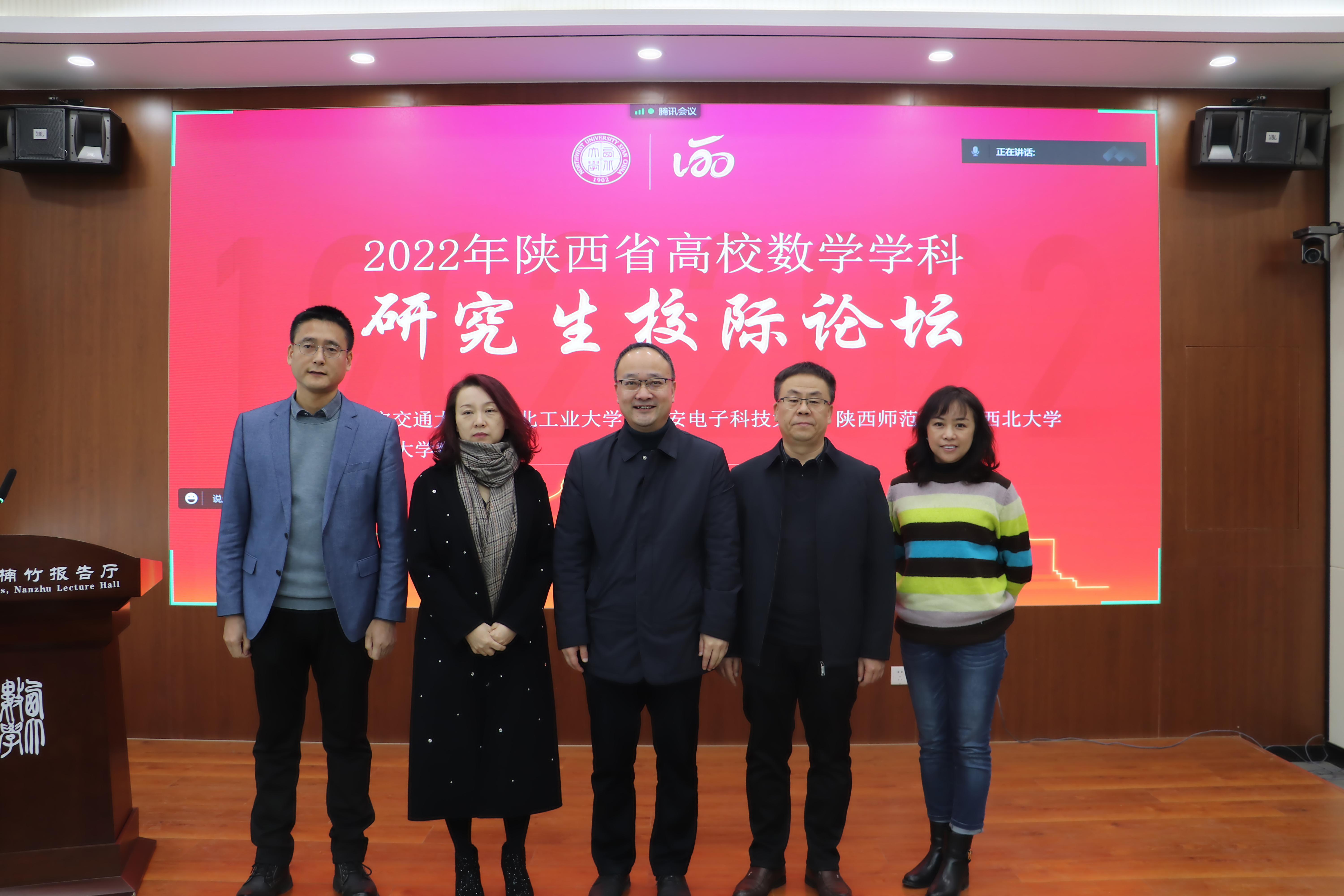 研究生学术报告环节由公司研究生张家瑞琦主持。陕西师范大学博士生任若男、西安交通大学博士生夏青、西安电子科技大学硕士生令狐嘉乐、西北工业大学博士生杨晓煜、2026年国际足联世界杯博士生张佳凡先后为大家介绍了各自的科研成果以及相关领域的前沿方向,使五校同学对学科不同领域的研究有了一定的理解和认识。