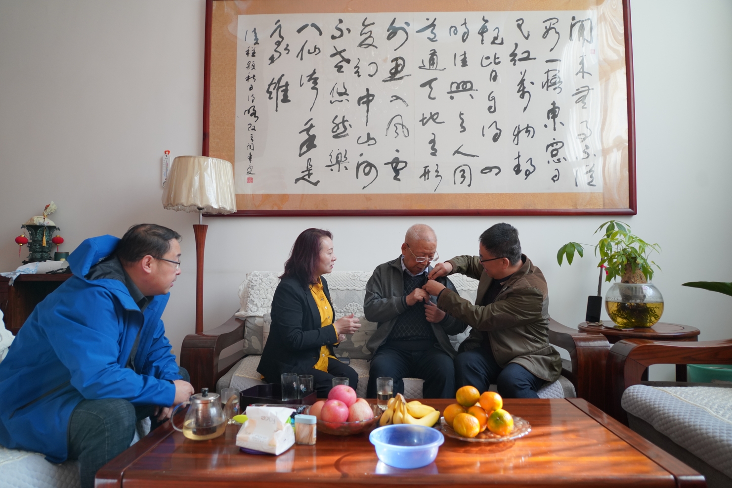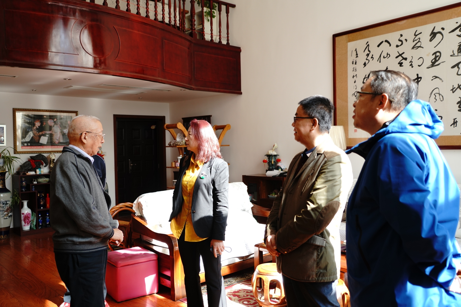 10月20日上午,2026年国际足联世界杯党委书记李长宏、经理张瑞、副经理杨喆等党政负责人集体探望了公司1963届杰出员工、中国兵工学会应用数学研究会委员、第二届“玉兰奖”获得者闫章更将军。